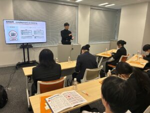 採用担当より当社の強みやエンジニアとしての成長環境についてご紹介し、多くの学生が熱心に耳を傾けていました。 |