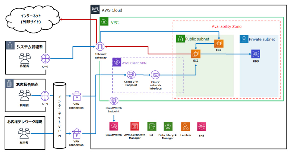 - 社内システムへはセキュリティを考慮して閉域網(VPN)で接続したい。