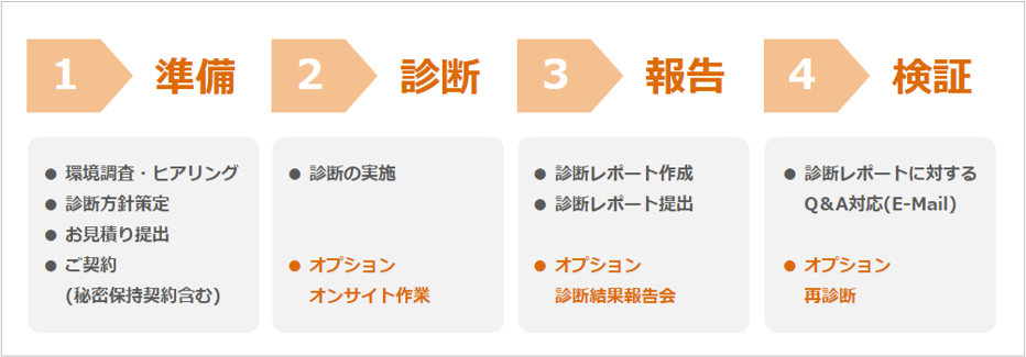 各脆弱性診断のサービスは下記の流れで実施いたします。